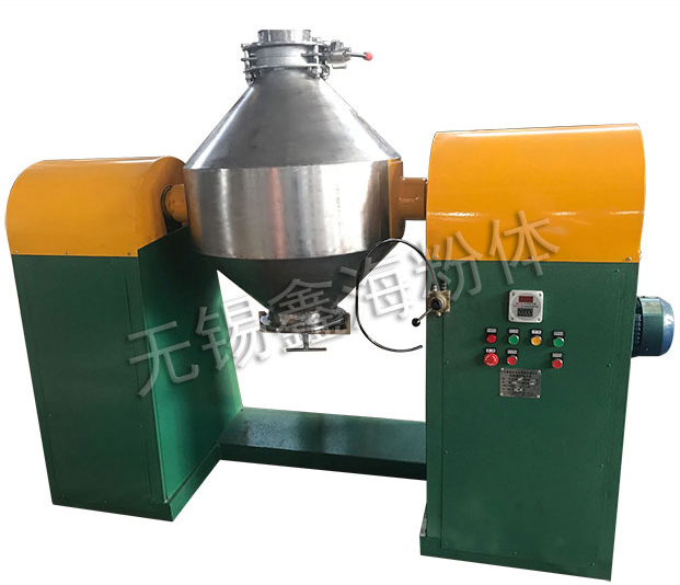 雙錐混料機主軸原密封結構見。有兩道密封,一道密封是殼內的迷宮密封,以阻滯粉料從軸與殼體間滲漏;二道密封是殼體外的壓蓋石棉盤根密封。